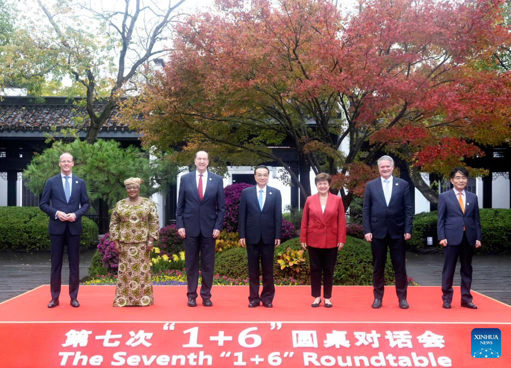 Li made the remarks during the seventh "1+6" Roundtable in Huangshan City, Anhui Province, with President David Malpass of the World Bank Group, Managing Director Kristalina Georgieva of the International Monetary Fund, Director-General Ngozi Okonjo-Iweala of the World Trade Organization, Director-General Gilbert F. Houngbo of the International Labor Organization, Secretary-General Mathias Cormann of the Organization for Economic Cooperation and Development, and Chairman Klaas Knot of the Financial Stability Board.