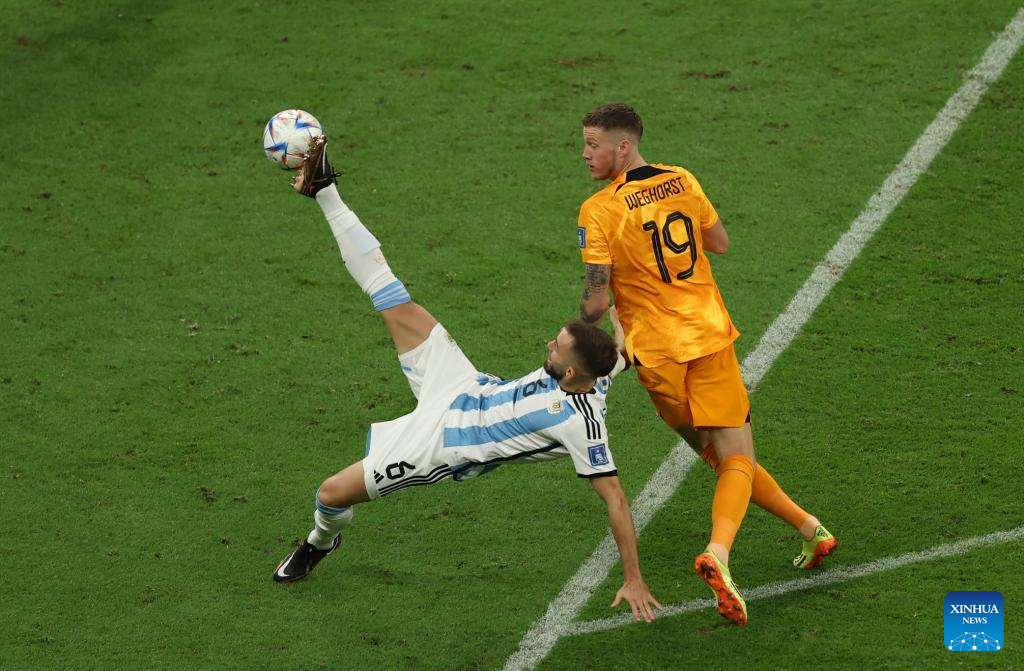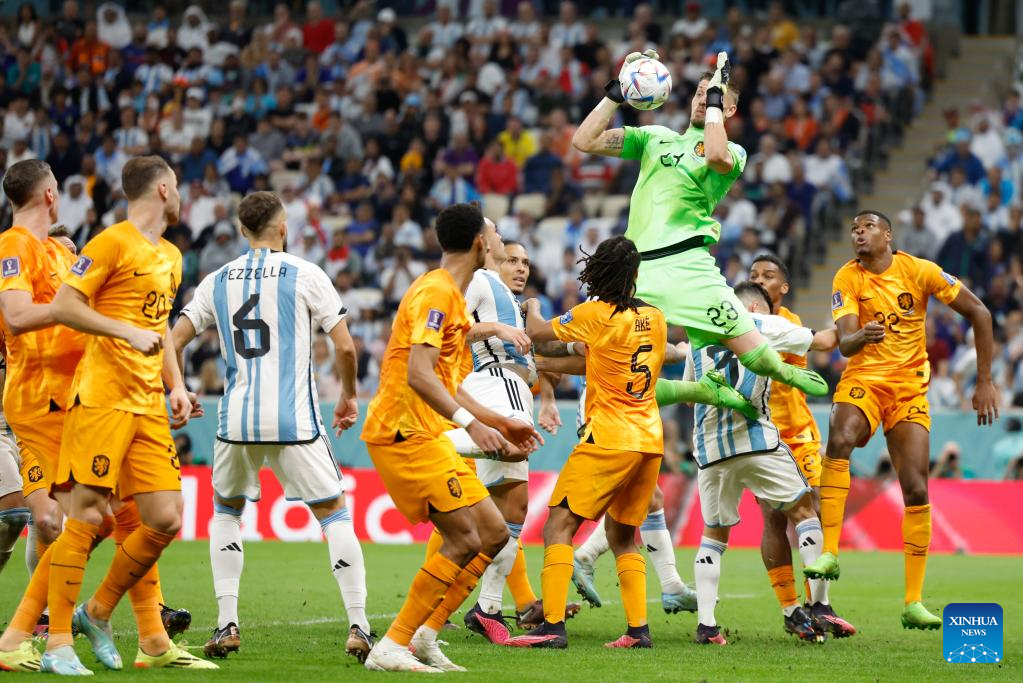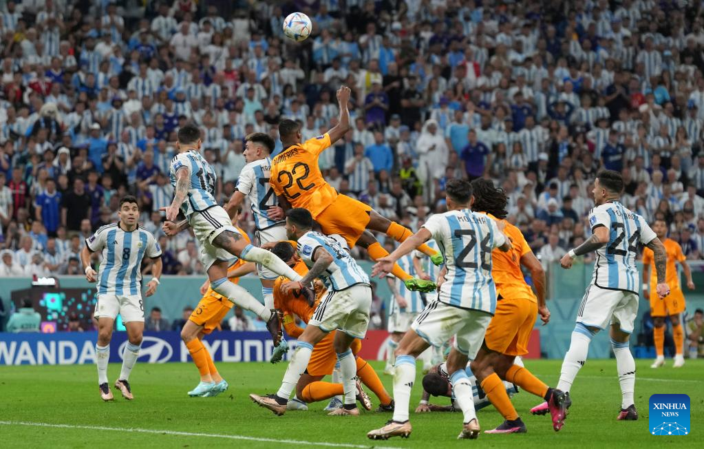 DOHA. Dec. 9 (Xinhua) -- Argentina goalkeeper Emiliano Martinez saved penalties from Virgil Van Dijk and Steven Berghuis as Argentina beat the Netherlands in a shootout after a 2-2 in normal time.