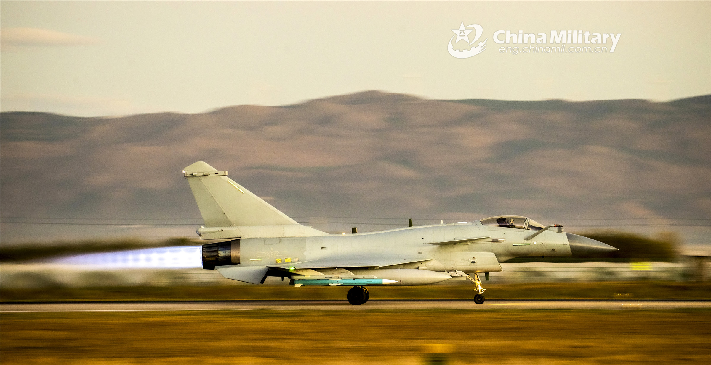 A fighter jet attached to an aviation brigade of the air force under the PLA Southern Theater Command taxies on the runway to get ready for a round-the-clock flight training exercise on November 18, 2022. (eng.chinamil.com.cn/Photo by Wang Guoyun)