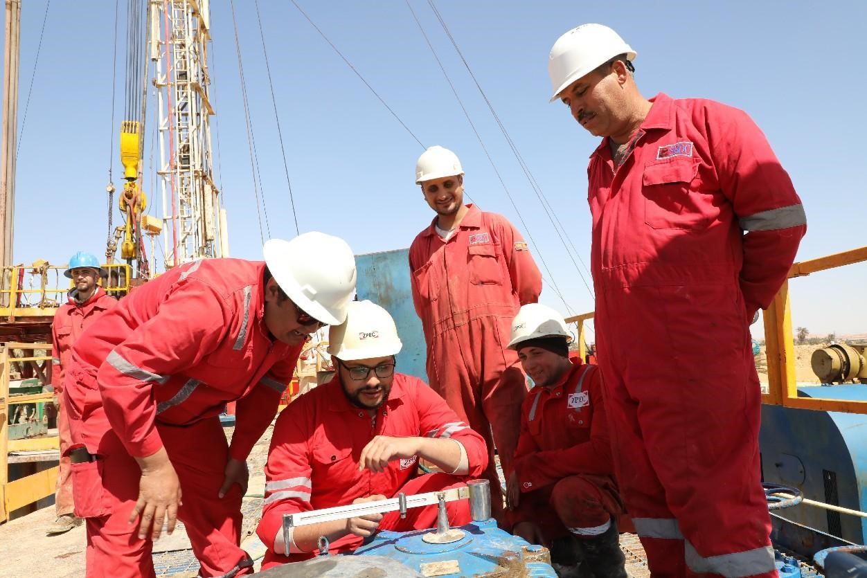 Employees of Chinese oilfield services company Zhongman Petroleum and Natural Gas Group work at a drilling site of a deep-water well at Siwa Oasis, Egypt. (People's Daily/Zhou Zhou)