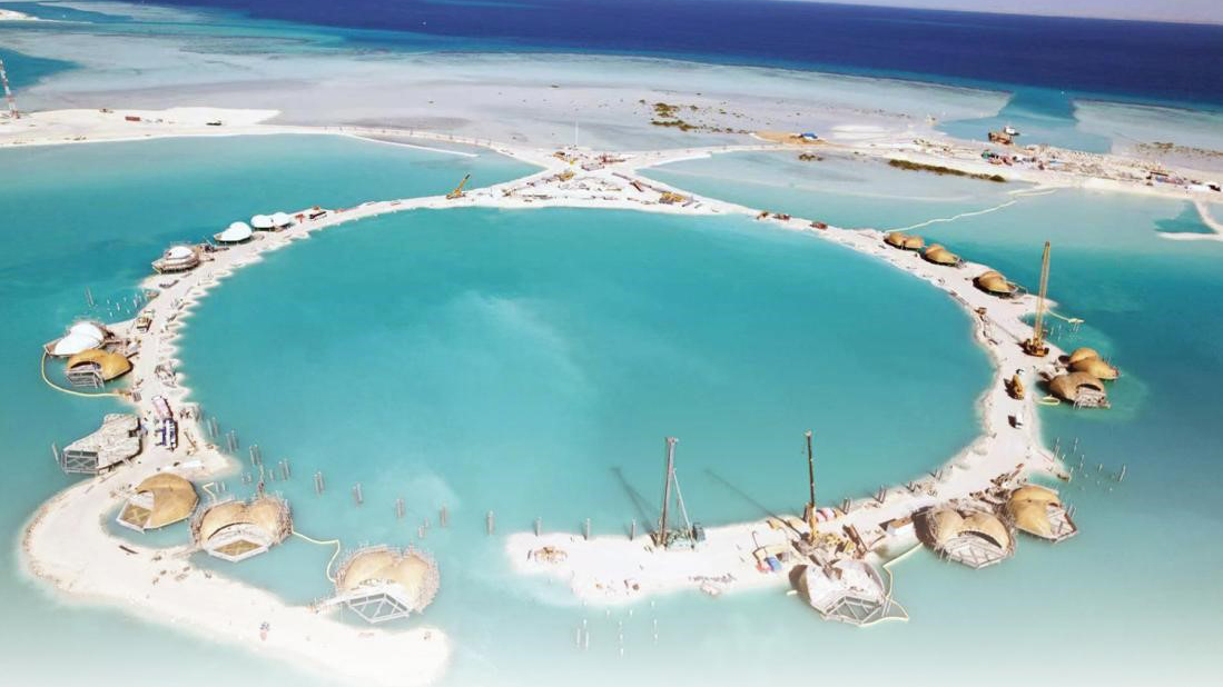 Photo shows China Harbour Engineering Company laying pile foundation and building passage platforms for a hotel in the Red Sea, Saudi Arabia. (Photo provided by China Harbour Engineering Company)