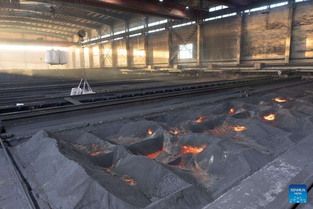 This photo taken on Dec. 8, 2022 shows the graphitization process of cathode materials for lithium-ion batteries at a workshop of a company in Hegang City, northeast China's Heilongjiang Province. In recent years, Hegang City has upgraded the exploitation of graphite resources and boosted the city's industrial transformation by developing graphite industry, promoting the local economic development.