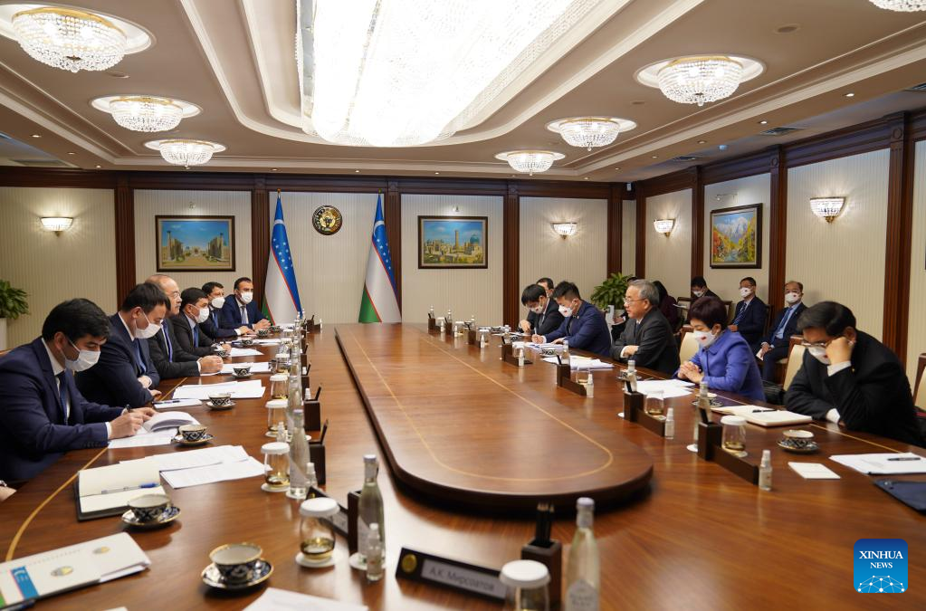 On the same day, Hu also met with Uzbek Deputy Prime Minister and Minister of Economic Development and Poverty Reduction Jamshid Kuchkarov, exchanging views on cooperation in poverty reduction and other fields.