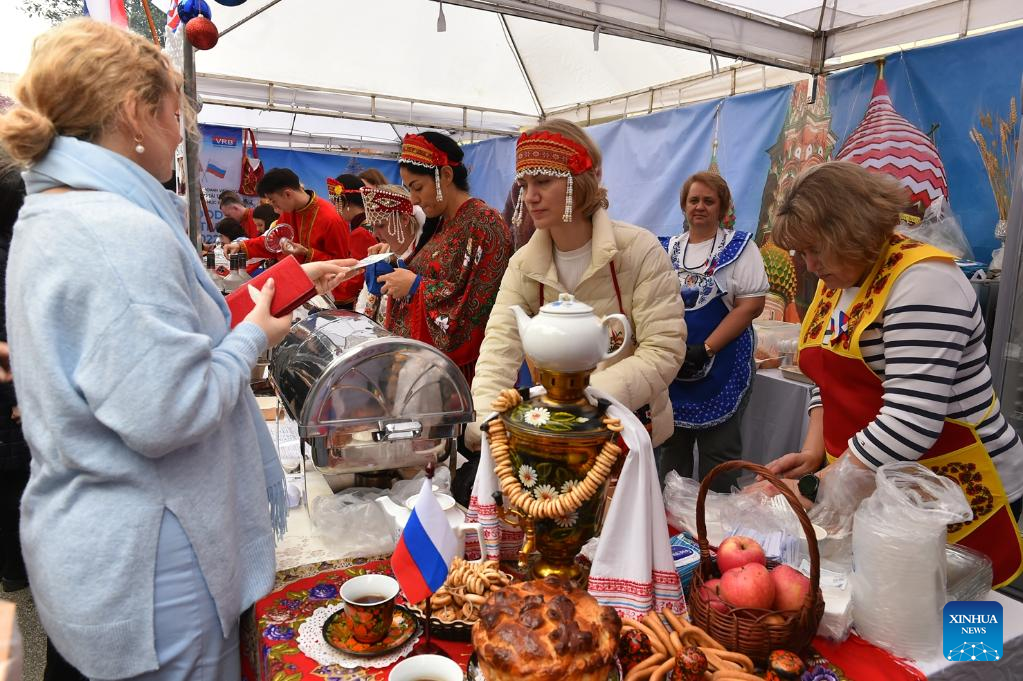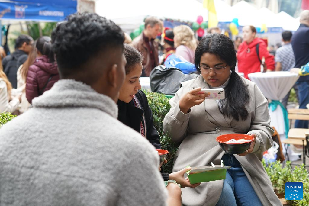 People enjoy food at the 2022 International Food Festival in Hanoi, Vietnam, on Dec. 11, 2022. (Xinhua/Hu Jiali)