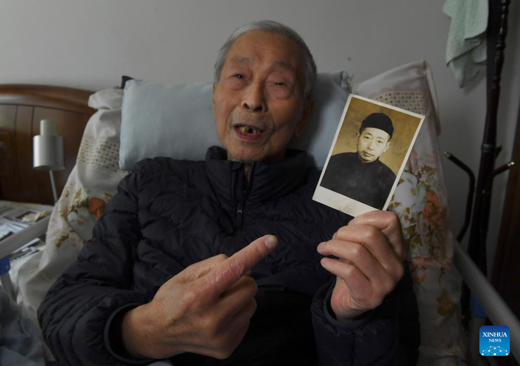 This photo taken on April 21, 2022 shows the portrait of Su Chengqi, a survivor of the Nanjing Massacre, in Nanjing, east China's Jiangsu Province. (Xinhua/Han Yuqing)