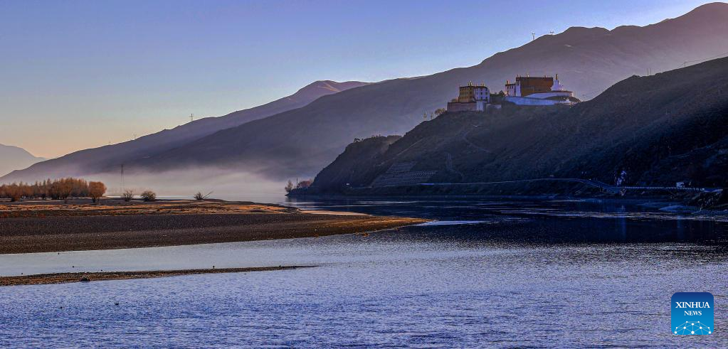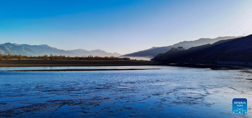 This photo taken on Dec. 11, 2022 shows the scenery of Quxu section of the Yarlung Zangbo River in Quxu County, southwest China's Tibet Autonomous Region. (Xinhua/Jiang Fan)