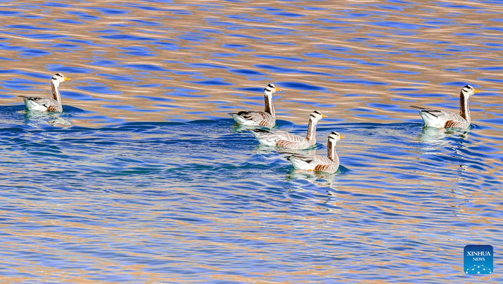 This photo taken on Dec. 11, 2022 shows birds at Quxu section of the Yarlung Zangbo River in Quxu County, southwest China's Tibet Autonomous Region. (Xinhua/Huang Yaoman)