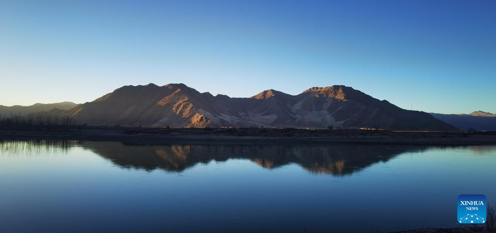 This mobile phone photo taken on Dec. 11, 2022 shows the scenery of Quxu section of the Yarlung Zangbo River in Quxu County, southwest China's Tibet Autonomous Region. (Xinhua/Shen Hongbing)