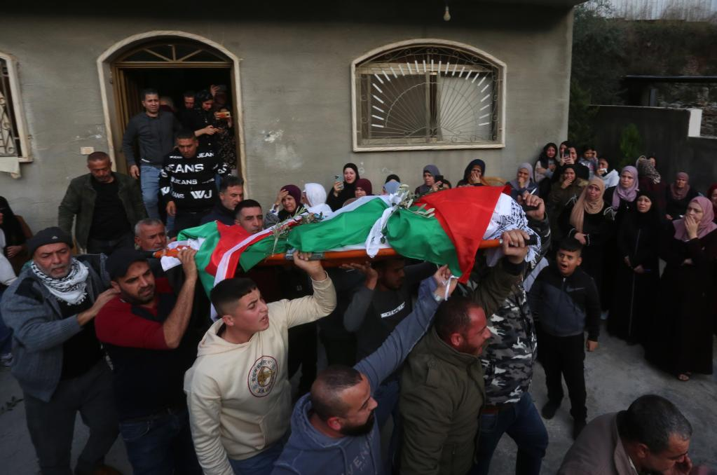 Mourners carry the body of Palestinian teenage girl Jana Majdi Zakarneh during her funeral in the northern West Bank city of Jenin, on Dec. 12, 2022. (Photo by Nidal Eshtayeh/Xinhua)