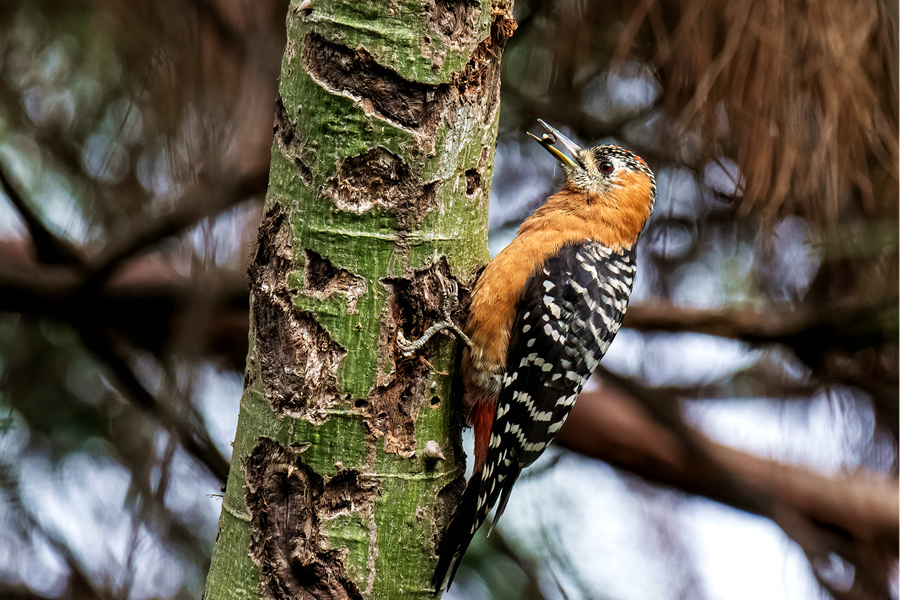 A rufous-bellied woodpecker is spotted in Xiamen city, southeast China’s Fujian Province. (Photo/Xiamen Birdwatching Association)