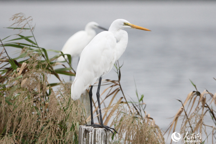 Two egrets are seen in the Xiamen Horticulture Expo Garden, Xiamen city, southeast China’s Fujian Province. (Photo/Chen Bo)