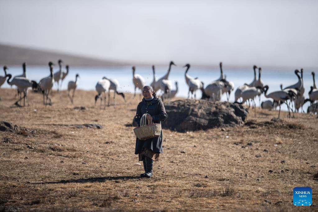 Pic story: protector of black-necked cranes in SW China's Yunnan