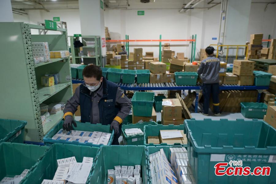 Staff members sort and pack medications on a production line at a pharmaceutical company in Beijing, Dec. 13, 2022. (Photo: China News Service/Zhao Wenyu)