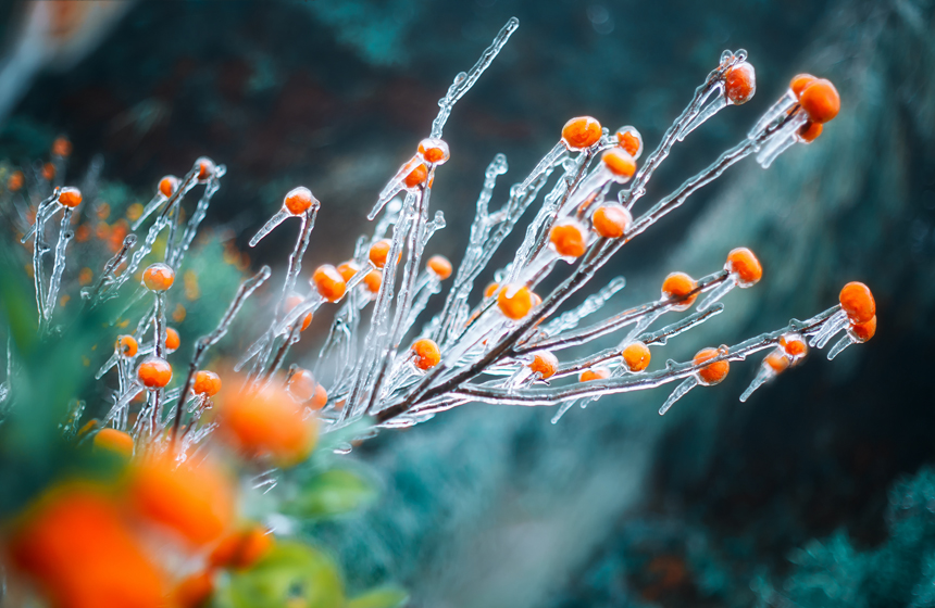 Mandarin oranges are covered in a layer of icicles in Nanfeng county, east China’s Jiangxi Province. (Photo/Xie Weimin)