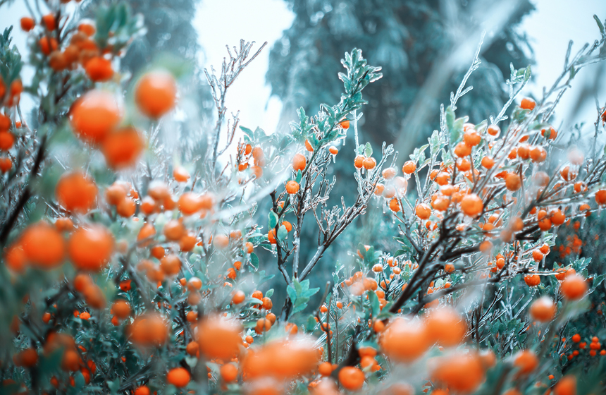 Mandarin oranges are covered in a layer of icicles in Nanfeng county, east China’s Jiangxi Province. (Photo/Xie Weimin)