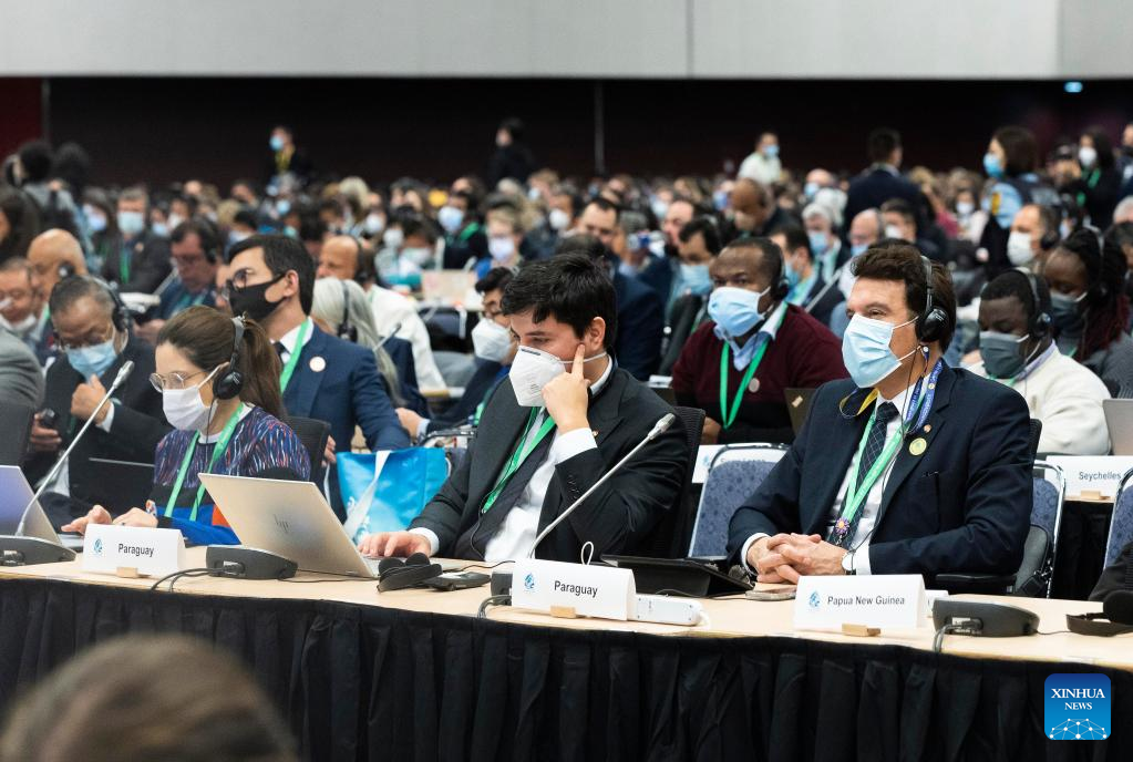 Participants attend the opening ceremony of the high-level segment of the second part of the 15th meeting of the Conference of the Parties to the Convention on Biological Diversity (COP15) in Montreal, Canada, Dec. 15, 2022. (Photo by Zou Zheng/Xinhua)