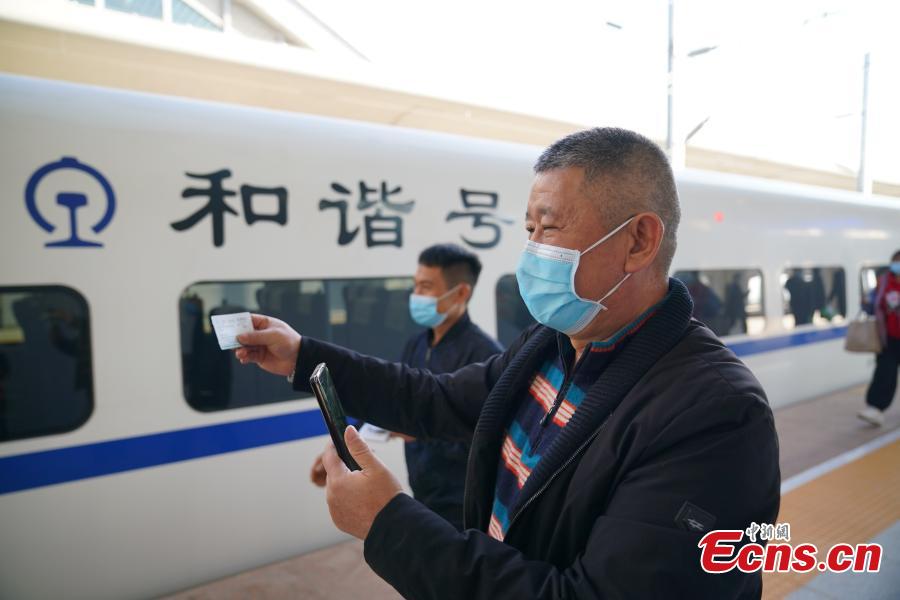 Passengers board a train at Honghe Railway Station of the Mile-Mengzi high-speed railway in southwest China's Yunnan Province, Dec. 16, 2022. (Photo: China News Service/Liu Ranyang)