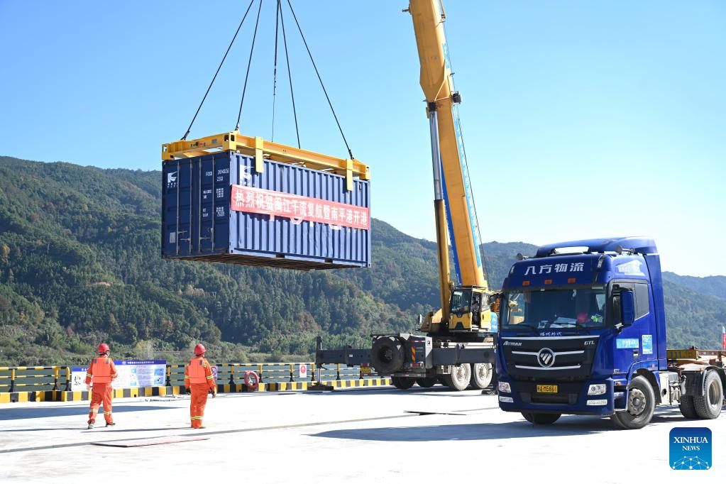 The main stream of Minjiang River reopened to navigation on Sunday. Navigation in the river's main stream had been suspended for years due to changes in water level and hydrogeological conditions.
