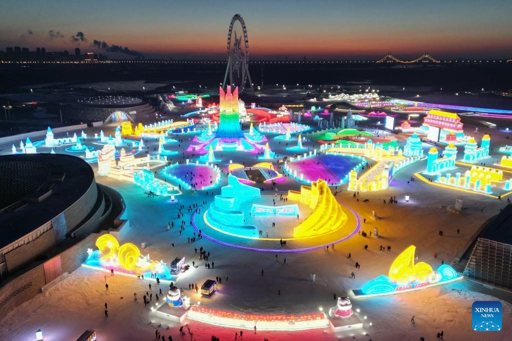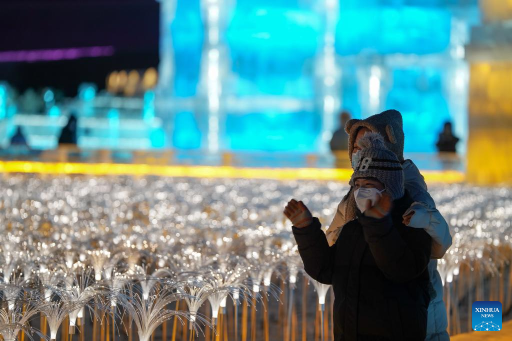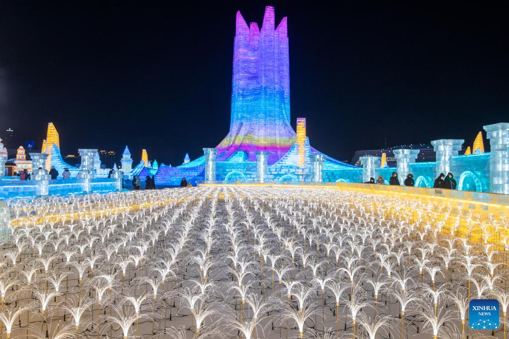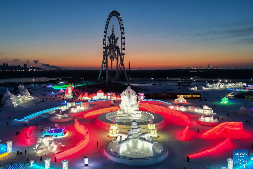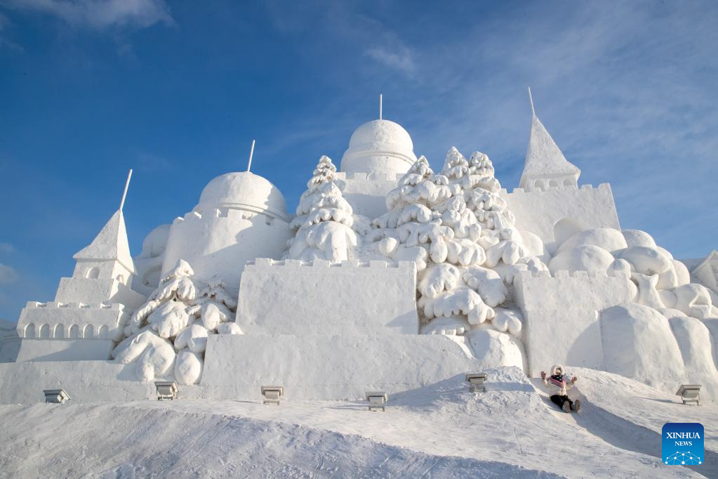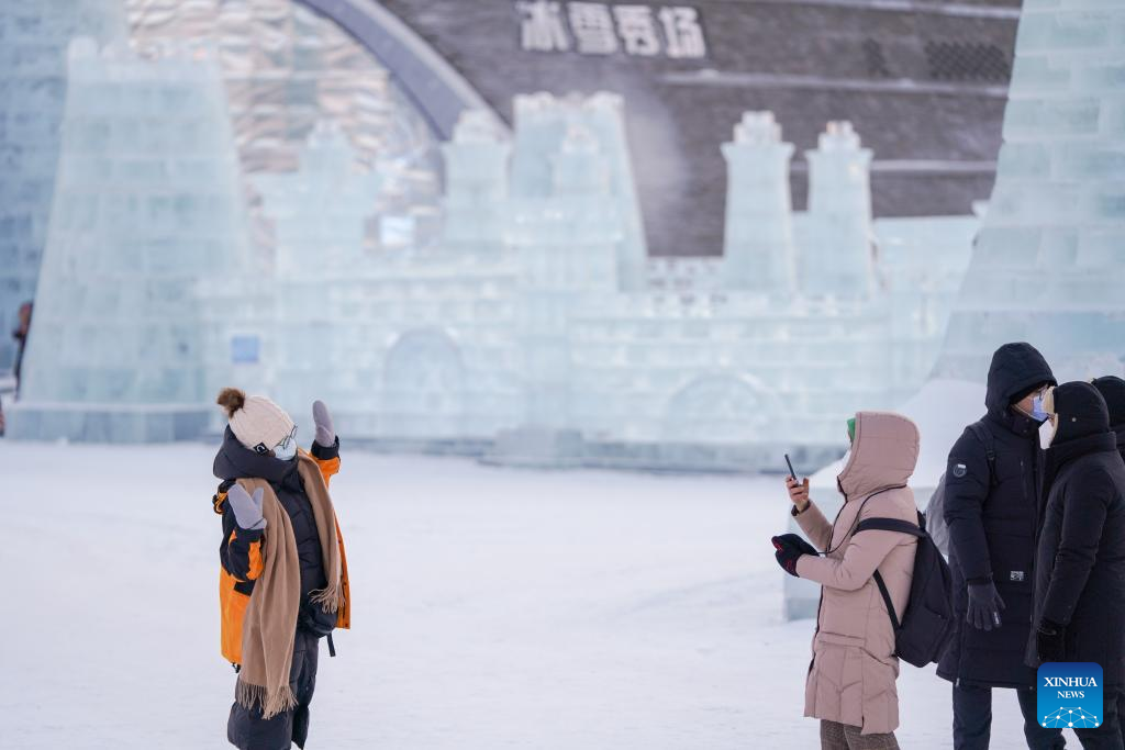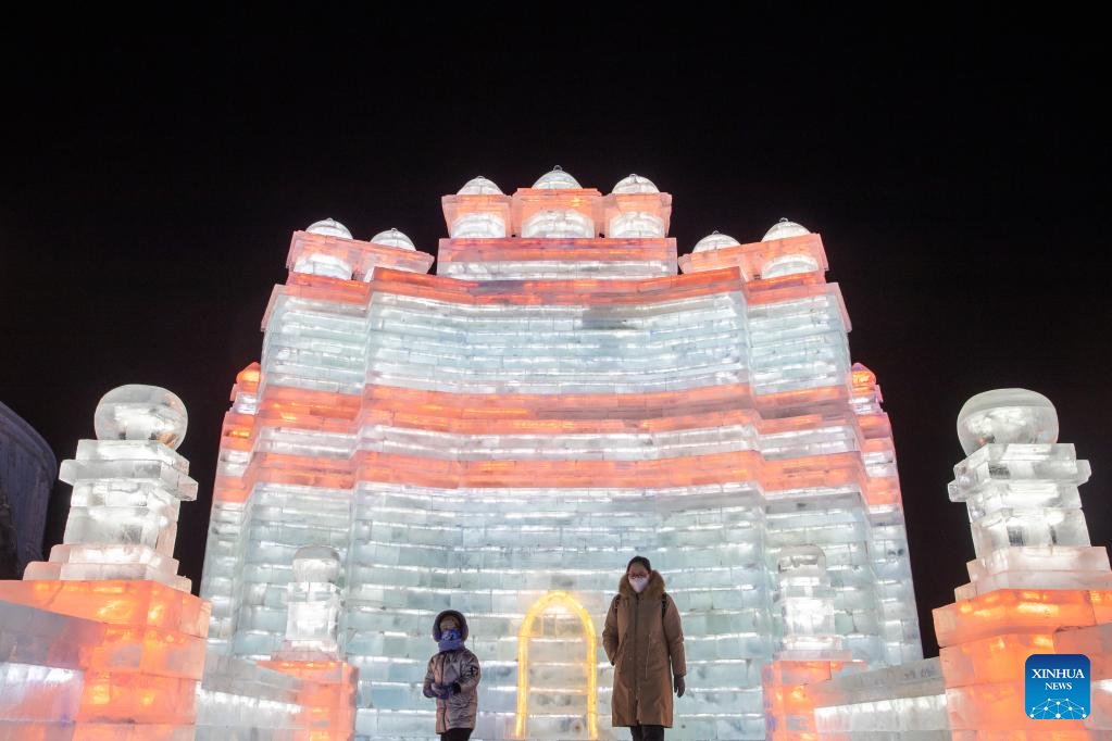 People visit the Harbin Ice-Snow World, a renowned seasonal theme park, in Harbin, northeast China's Heilongjiang Province, Dec. 17, 2022. (Xinhua/Wang Song)