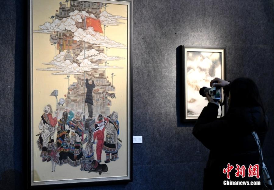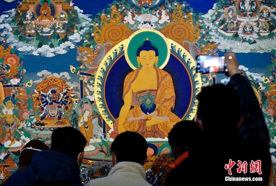 The 8th Thangka painting exhibition kicked off on Monday. More than 50 works were on display at the exhibition. Thangka, a Tibetan scroll-banner depicting various kinds of contents, is known as a Tibetan "encyclopedia."