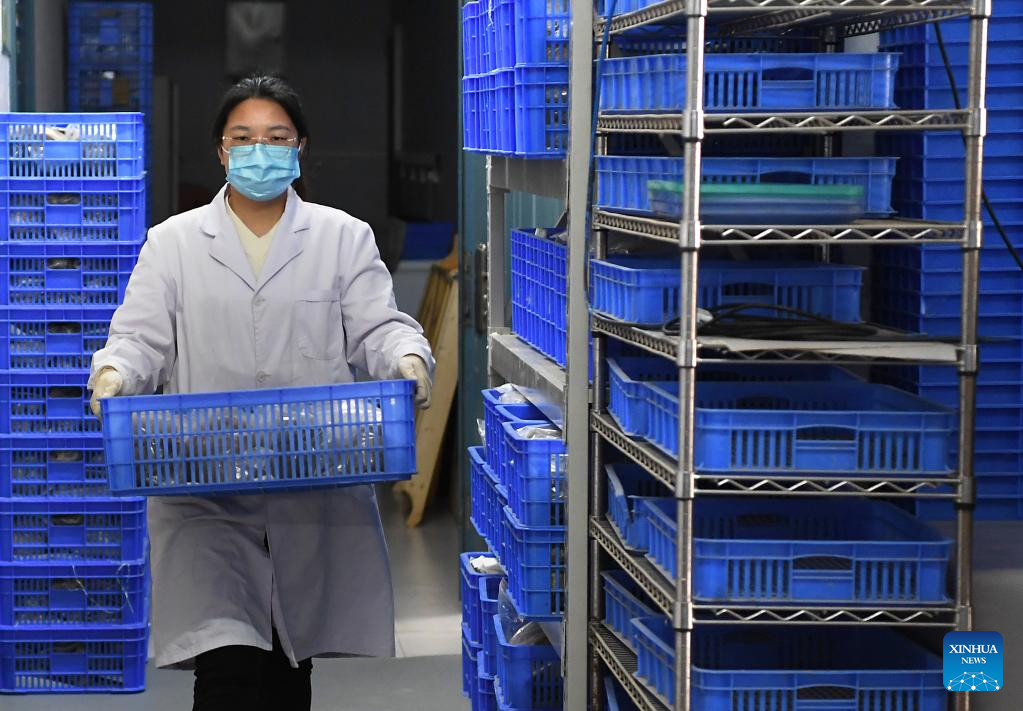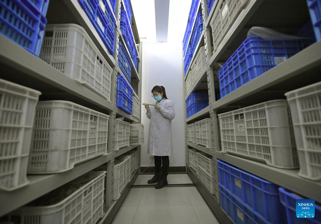 Li Yanzhen carries human bone specimens at Henan Institute of Cultural Relics and Archaeology in Zhengzhou, central China's Henan Province, Nov. 30, 2022. (Xinhua/Li An)