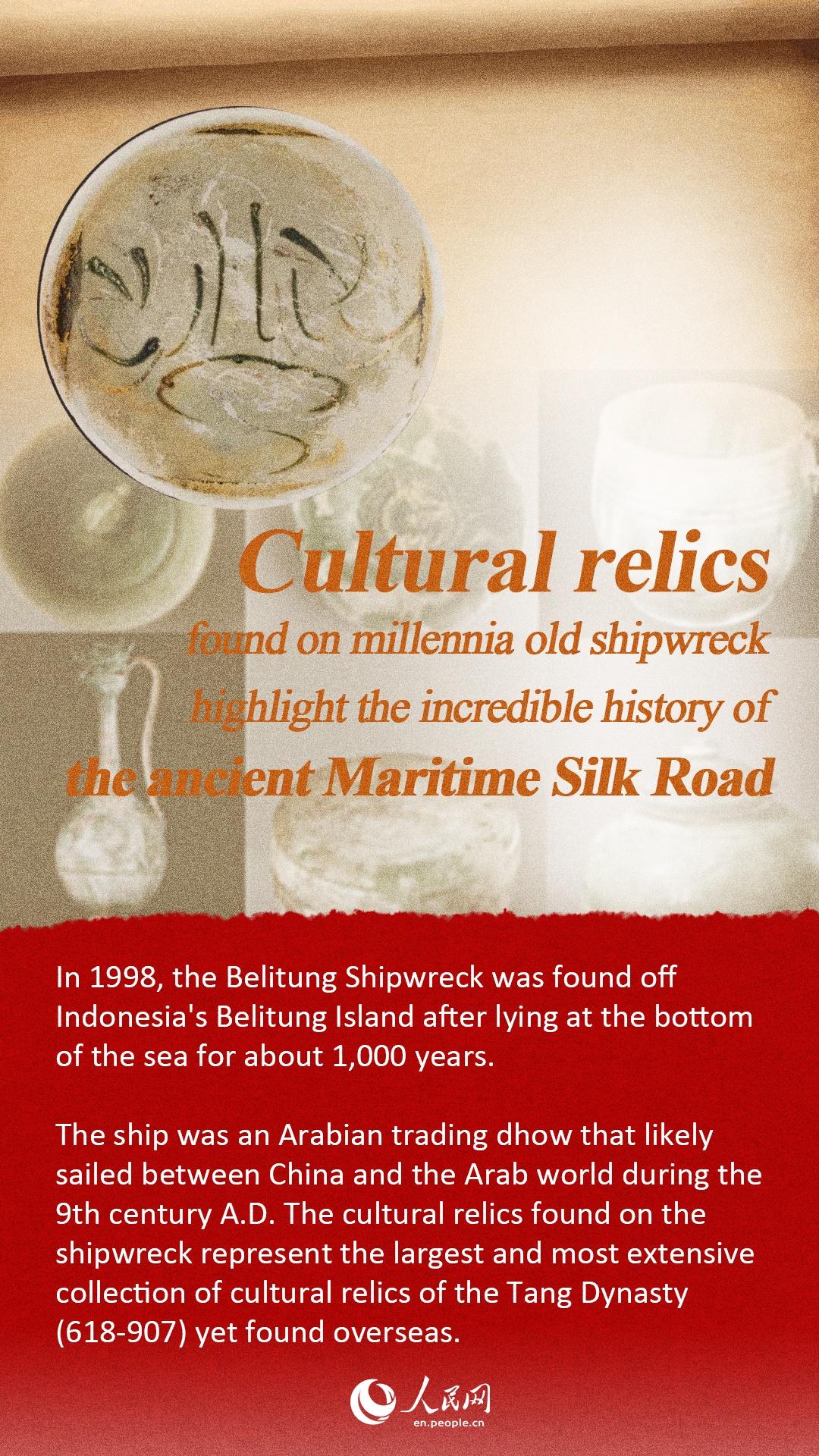 The ship was an Arabian trading dhow that likely sailed between China and the Arab world during the 9th century A.D. The cultural relics found on the shipwreck represent the largest and most extensive collection of cultural relics of the Tang Dynasty (618-907) yet found overseas. The collection, which includes as many as 60,000 individual pieces of ceramics, provides strong evidence of trade and cultural exchanges between China and countries in the Middle East during the first half of the 9th century.
