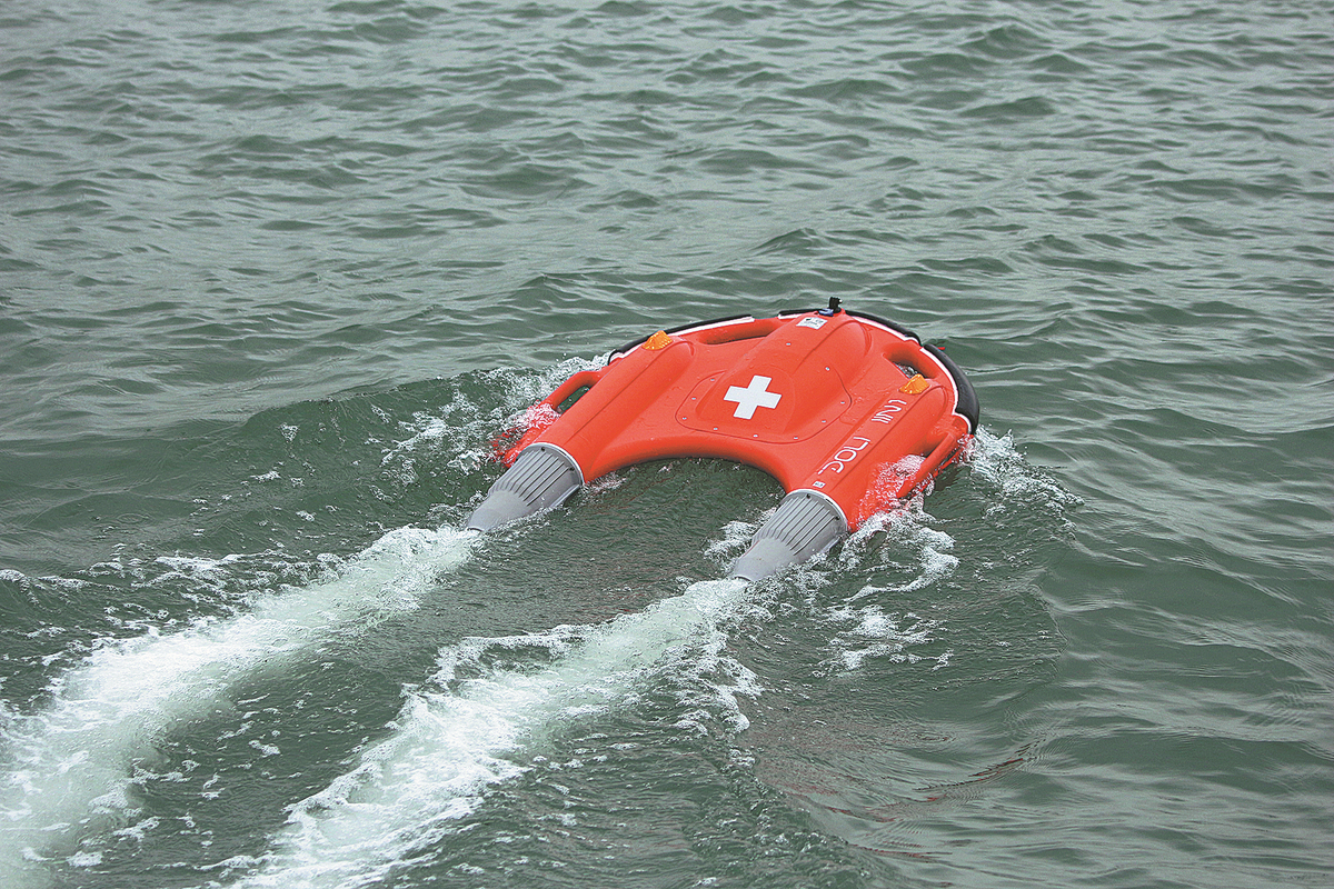 Those rescued at sea by the device can either climb onto the robot or grab handles installed on its body to be taken back to shore.