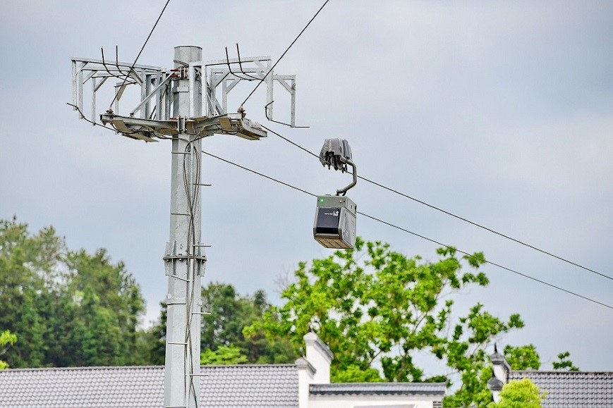 An intelligent robot carries farm produce on a cable way in Yangjia village, Hezi township, Anyuan county, Ganzhou, east China's Jiangxi province, April 2022. (People's Daily Online/Zhu Haipeng)