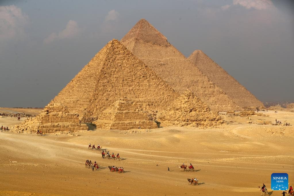 Tourists visit the Giza Pyramids scenic spot in Giza, Egypt, on Dec. 22, 2022. (Xinhua/Sui Xiankai)