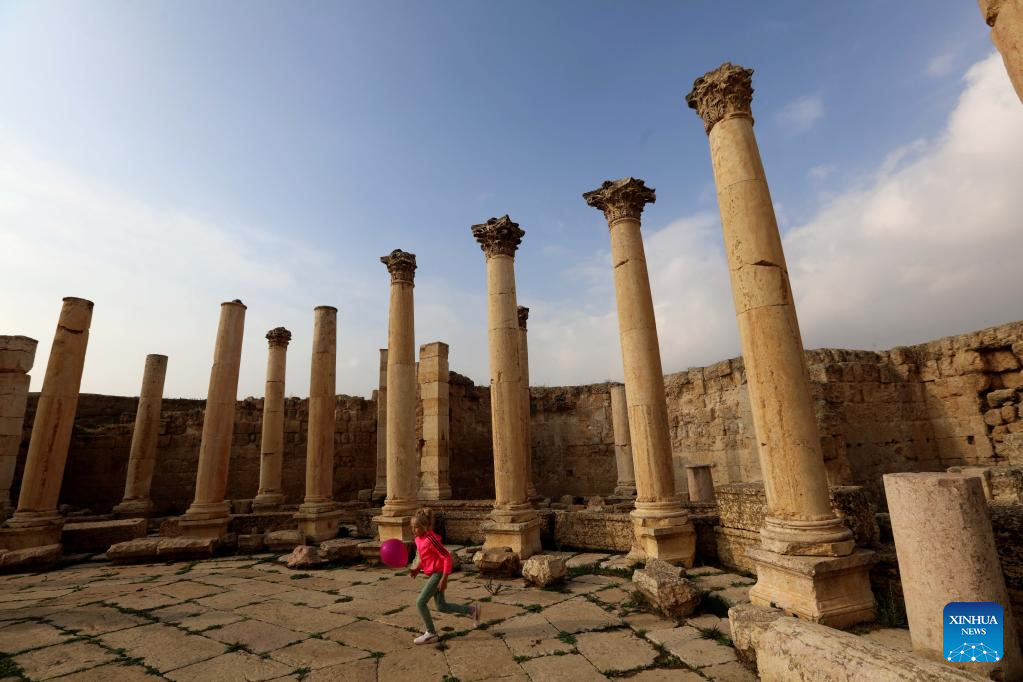 A girl is seen at a Roman archeological site in Jerash, Jordan, on Dec. 23, 2022. (Photo by Mohammad Abu Ghosh/Xinhua)