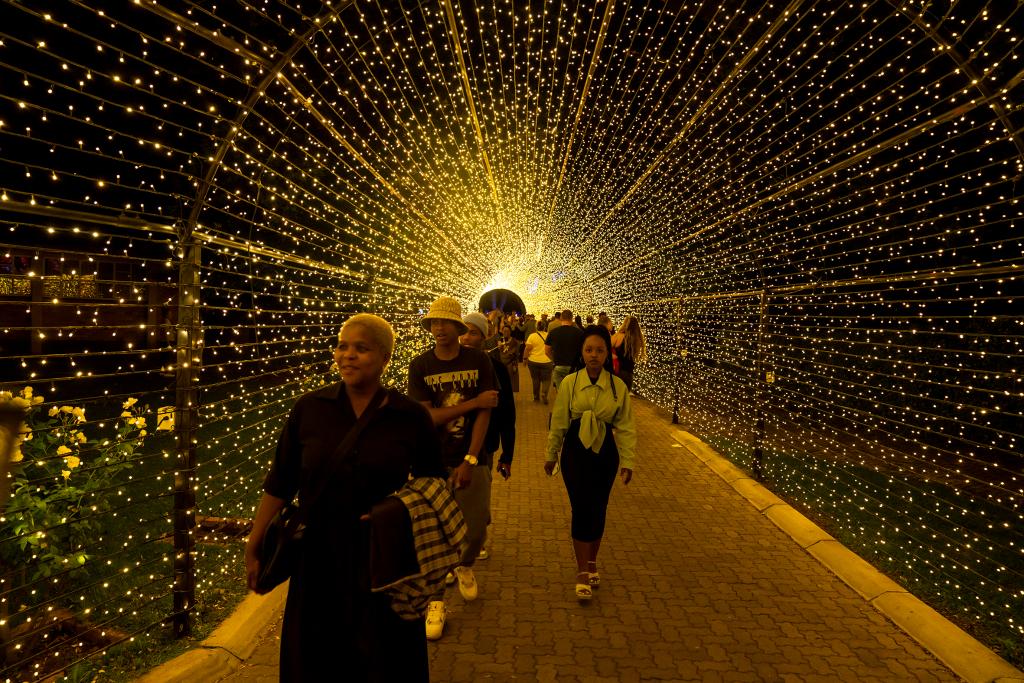 People visit a light fair in Potchefstroom, South Africa, Dec. 22, 2022. (Photo by Shiraaz Mohamed/Xinhua)