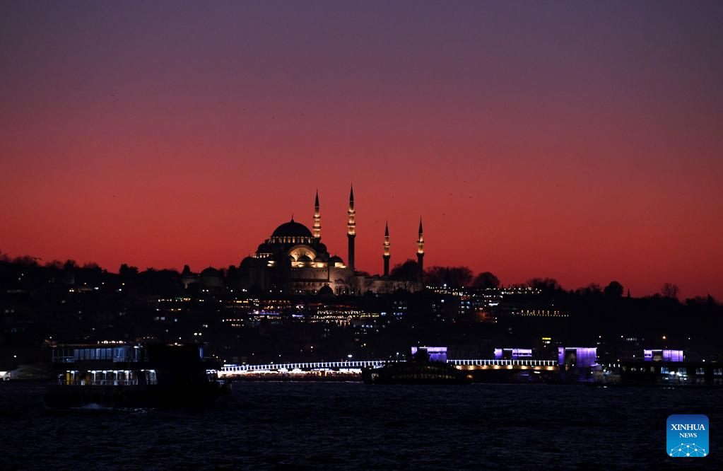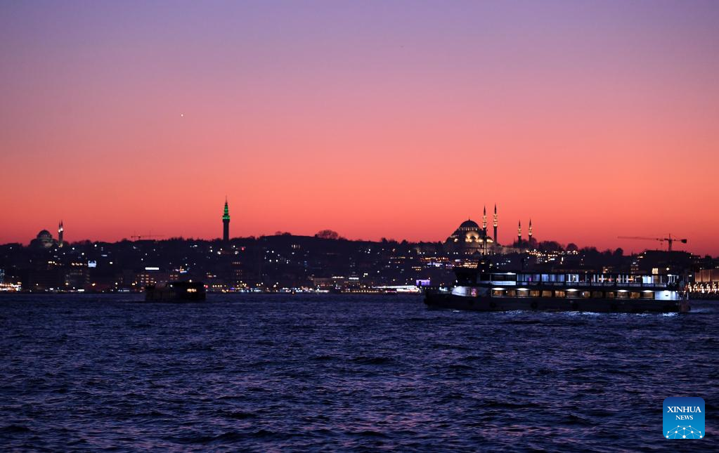 This photo taken on Dec. 22, 2022 shows the sunset view in Istanbul, Trkiye. (Xinhua/Shadati)