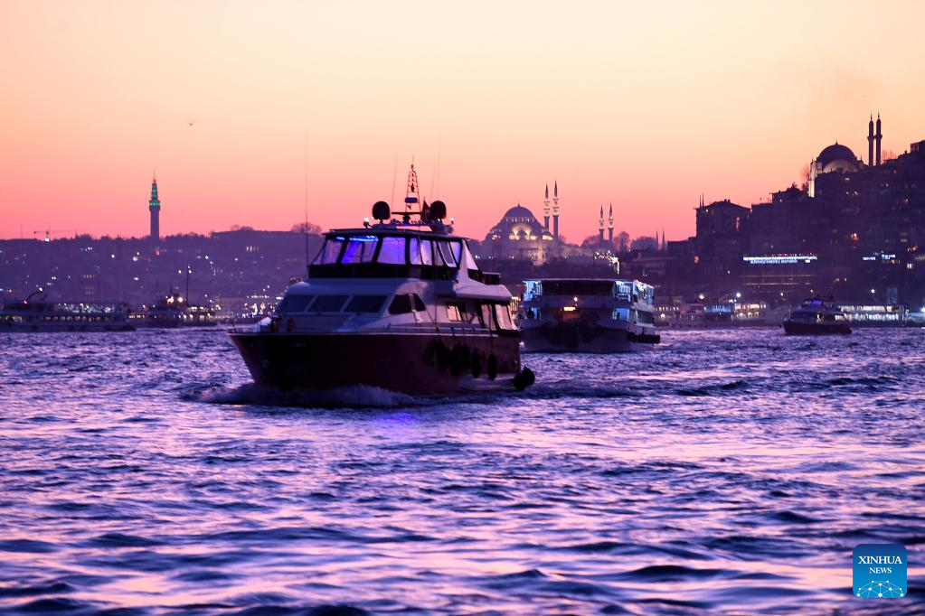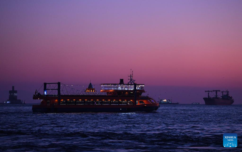 Visitors take a ferry at the Bosporus Strait in Istanbul, Trkiye, Dec. 22, 2022. (Xinhua/Shadati)