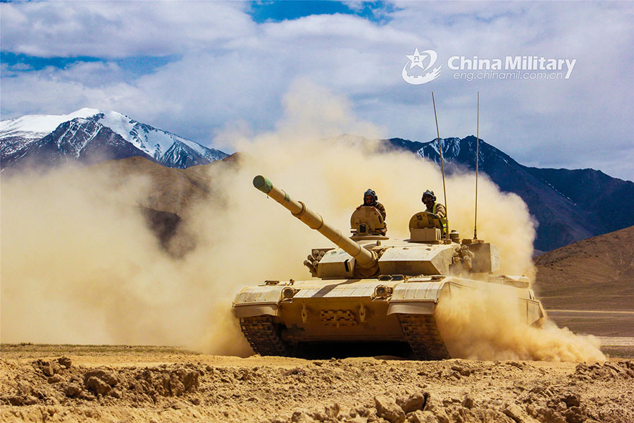 Tankmen assigned to a brigade under the PLA 77th Group Army drive a main battle tank through smoke and dust in complex terrain during a field maneuver training exercise on December 4, 2022. (eng.chinamil.com.cn/Photo by Huang Tengfei and Tang Chaocheng)