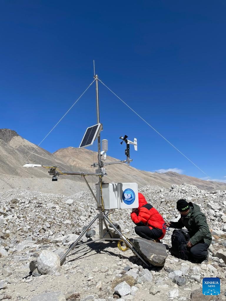 On May 4, Chinese scientific researchers established an automatic meteorological monitoring station at an altitude of over 8,800 meters, making it the world's highest of its kind, on Mount Qomolangma, known in the West as Mount Everest, on the China-Nepal border.