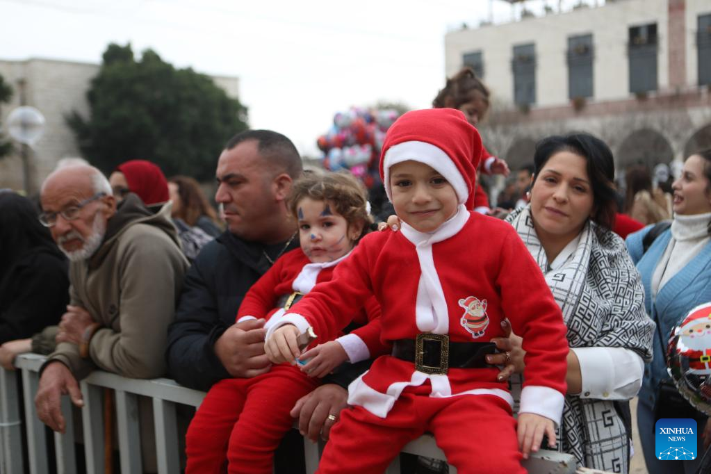BETHLEHEM, West Bank, Dec. 25 (Xinhua) -- Once again, the Palestinian city of Bethlehem is bathed in Christmas celebrations with a large number of tourists after a two-year hiatus because of COVID-19 travel restrictions.