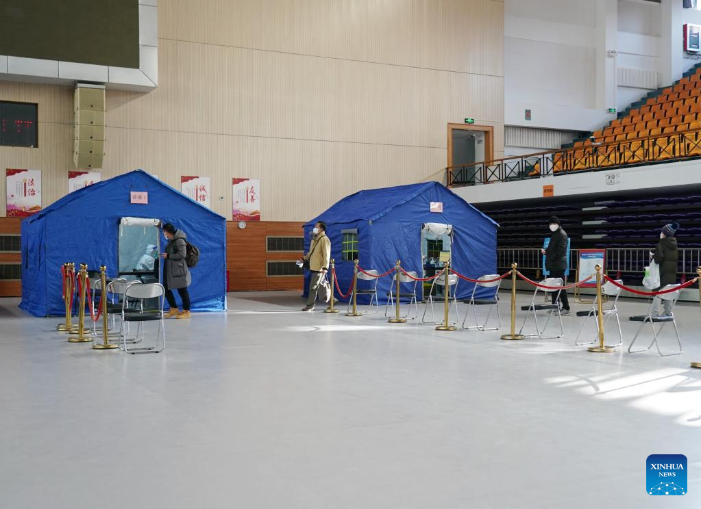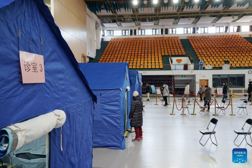 This photo taken on Dec. 24, 2022 shows a makeshift fever clinic of Beijing Chaoyang Hospital in Chaoyang Gymnasium in Beijing, capital of China. (Xinhua/Chen Zhonghao)