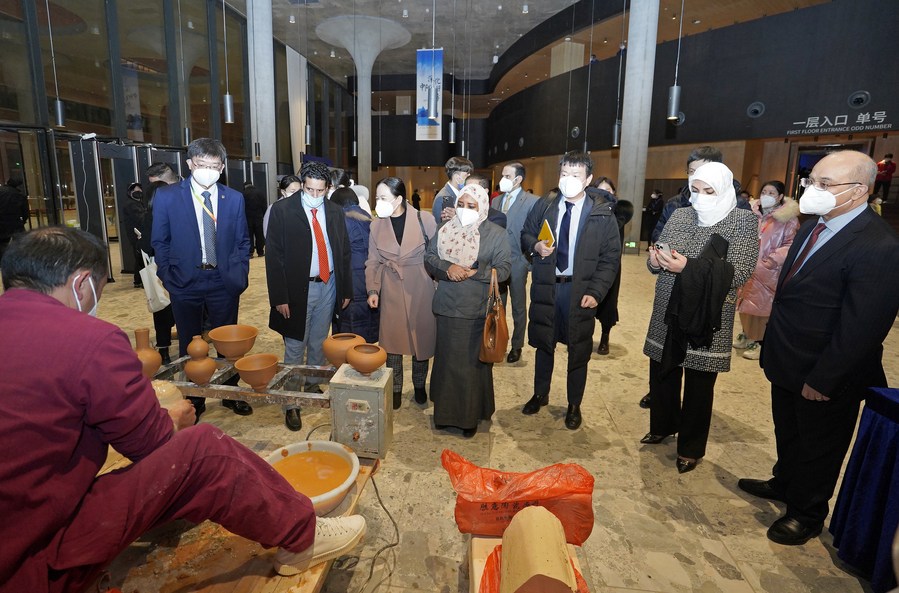 People visit an intangible cultural heritage exhibition during an arts festival in Jingdezhen, east China's Jiangxi Province, Dec. 19, 2022. (Photo by Lei Zhi/Xinhua)