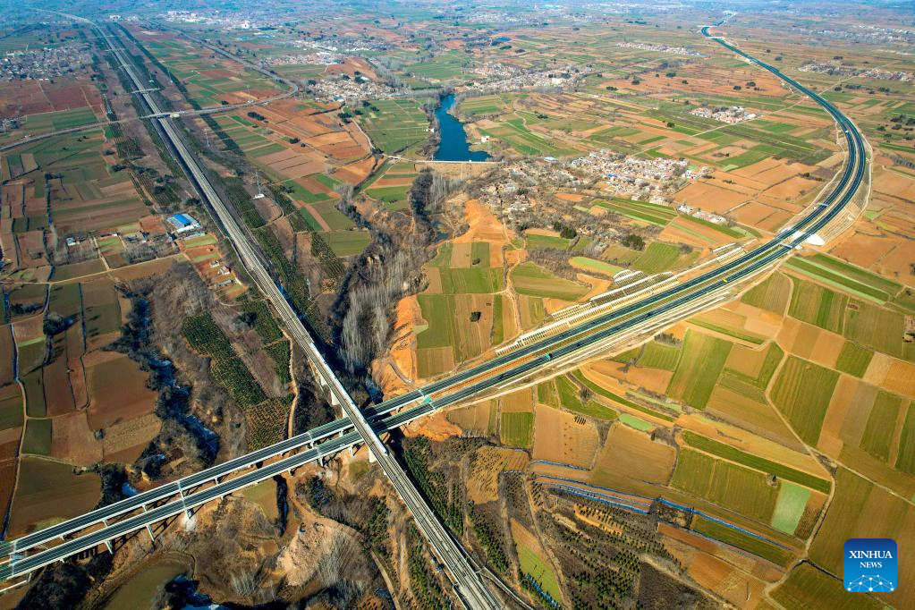 This aerial photo taken on Dec. 26, 2022 shows the expressway linking Xin'an and Yichuan in central China's Henan Province. (Photo by Zhang Yixi/Xinhua)