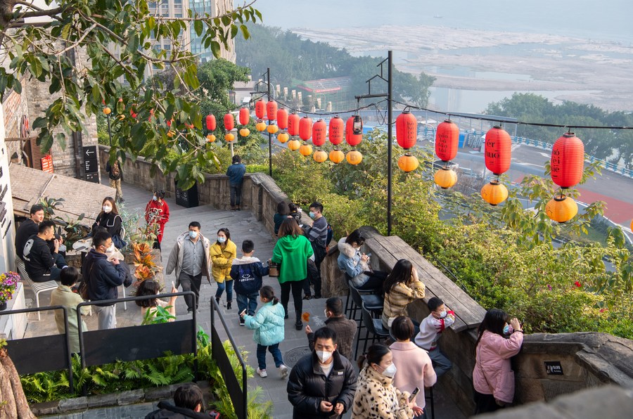 People visit Shancheng Alley of the Jiefangbei business district in Chongqing, southwest China, on Dec. 24, 2022. (Xinhua/Tang Yi)