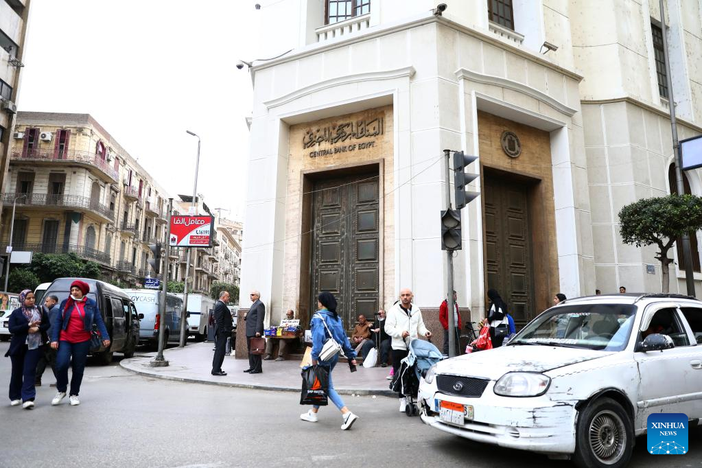 People are seen outside of the building of Central Bank of Egypt in Cairo, Egypt, Dec. 25, 2022. (Xinhua/Ahmed Gomaa)