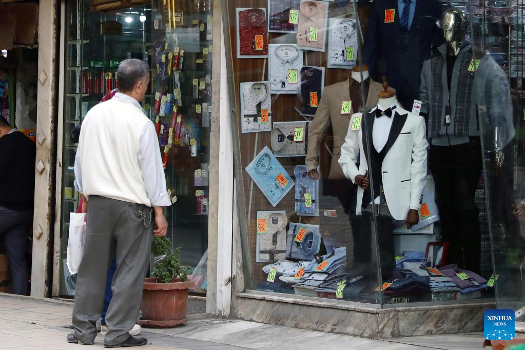 A man stands in front of a clothing store in Cairo, Egypt, Dec. 25, 2022. (Xinhua/Ahmed Gomaa)