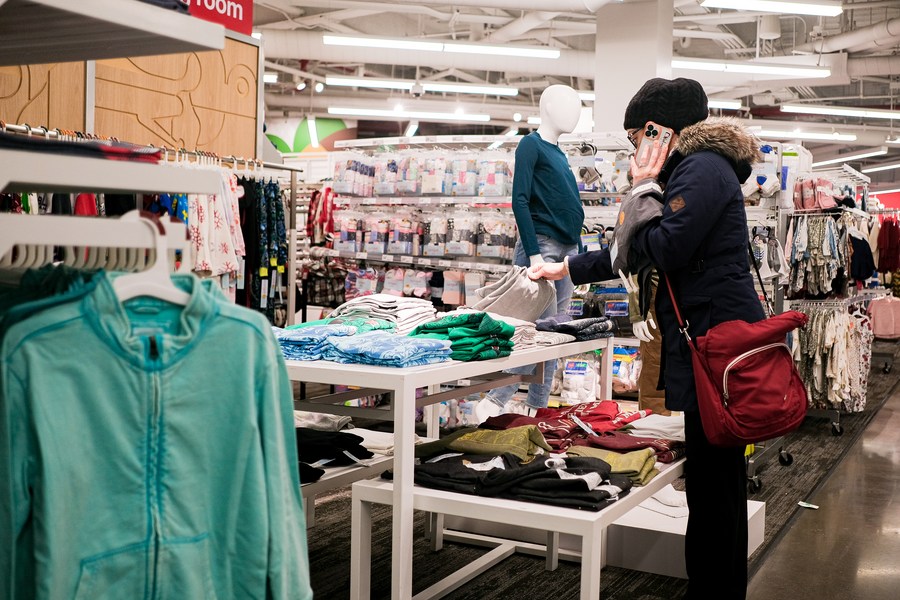 A customer selects goods in a store in Queens, New York, the United States on Dec. 23, 2022. (Photo by Ziyu Julian Zhu/Xinhua)