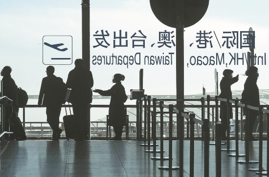 Travelers enter a terminal at Beijing Capital International Airport to take flights on Thursday as some restrictions for travel were eased. CUI JUN/FOR CHINA DAILY
