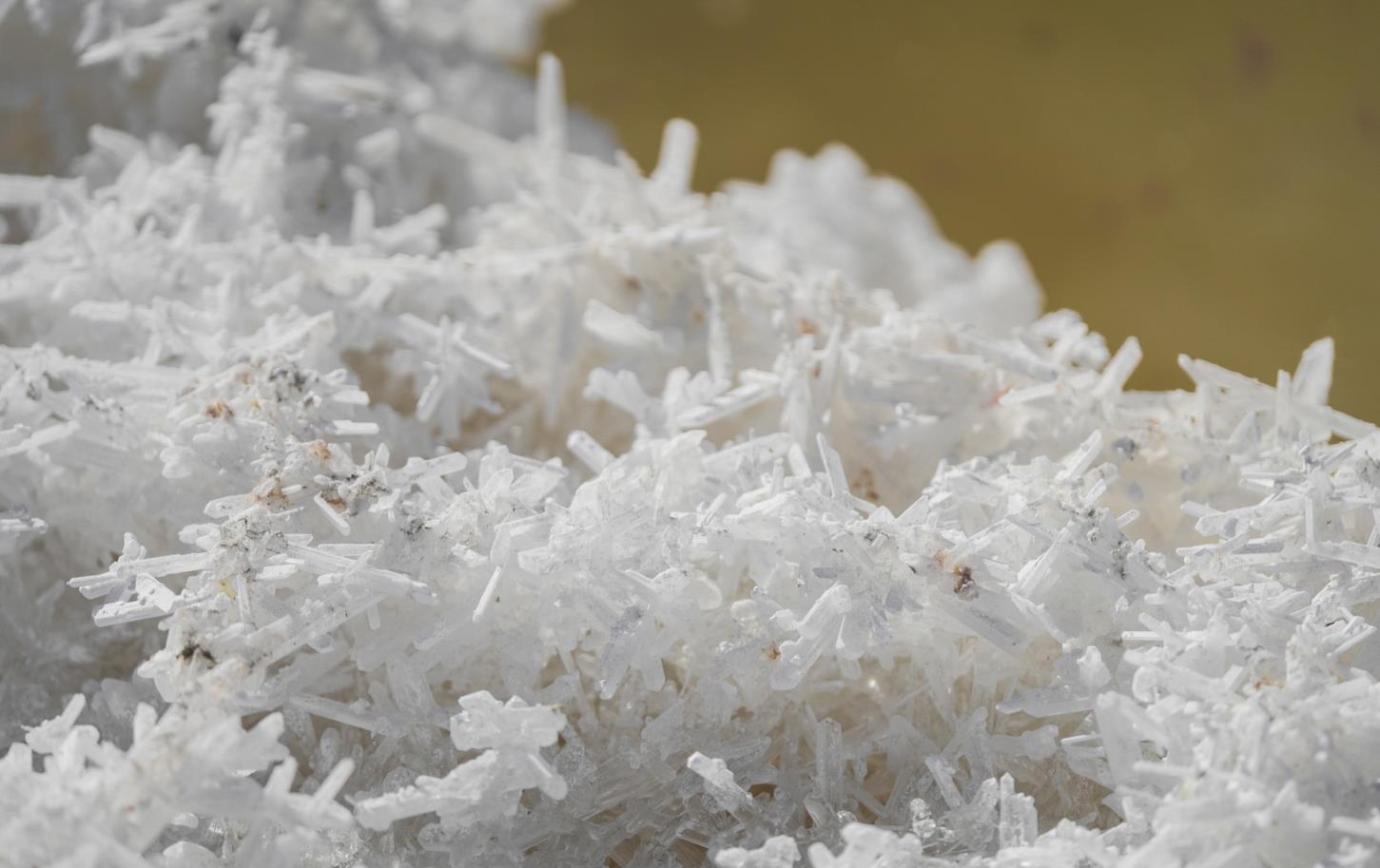 “Crystal flowers”, crystallized from sodium sulfate and magnesium sulfate in cold weather, appear on the surface of a salt lake in Yuncheng, north China’s Shanxi Province. (Photo/People’s Daily Online)