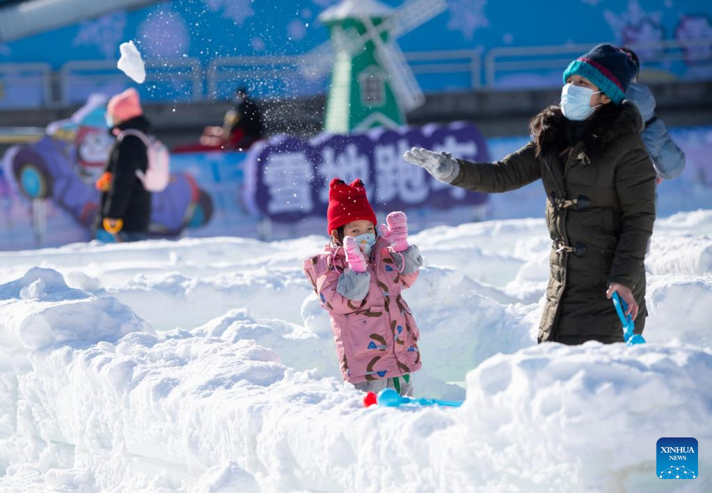 A mother plays with her child at an ice and snow carnival at Taoranting park in Beijing, capital of China, Dec. 28, 2022. (Xinhua/Chen Zhonghao)