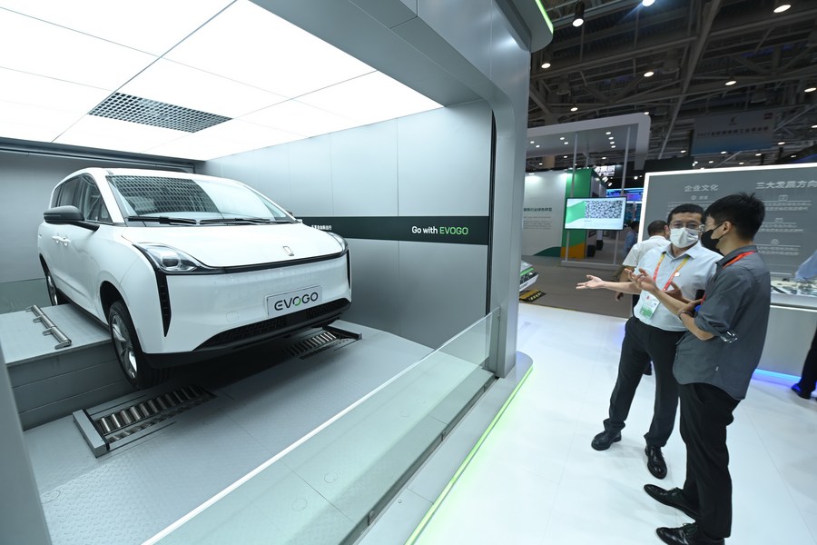 People visit the booth of Chinese battery producer Contemporary Amperex Technology Co., Limited during the 22nd China International Fair for Investment and Trade in Xiamen, east China's Fujian Province, Sept. 8, 2022. (Xinhua/Lin Shanchuan)