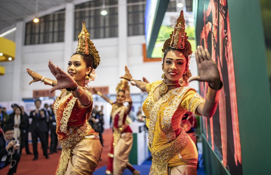 Dancers from Sri Lanka perform during the 2019 China International Travel Mart (CITM) held in Kunming, capital of southwest China's Yunnan Province, Nov. 15, 2019. (Xinhua/Jiang Wenyao)