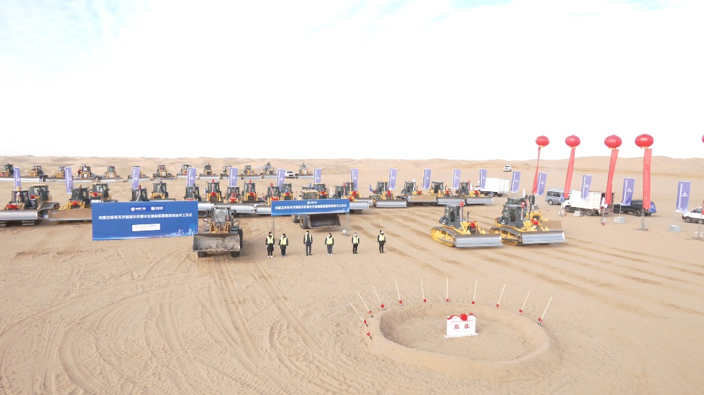 A mega solar and wind power base kicks off construction in the Kubuqi Desert in North China's Inner Mongolia autonomous region, Dec 28, 2022. [Photo/China Three Gorges Corporation]