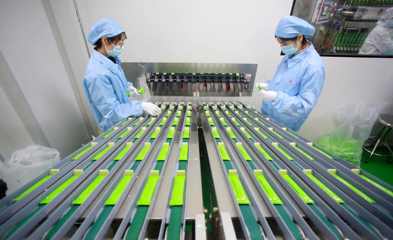 Medicines are being manufactured in a pharmaceutical enterprise in east China's Jiangsu province, Dec. 21. (People's Daily Online/Meng Delong)